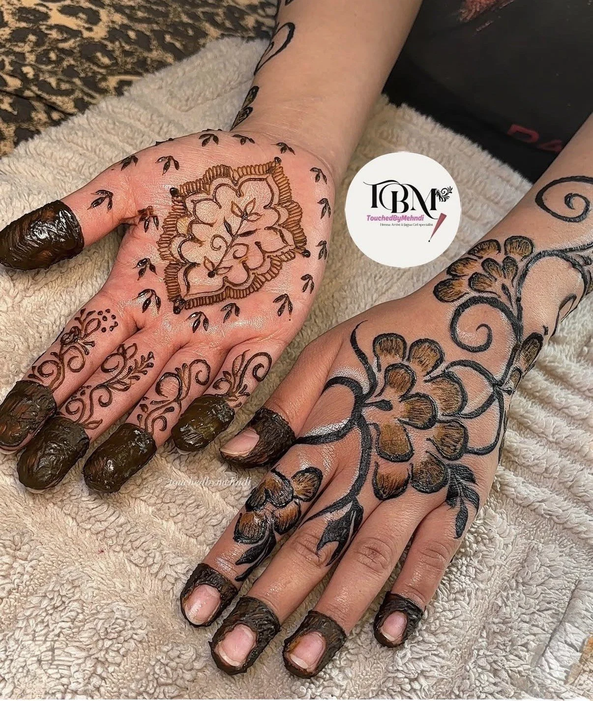 A choice of your henna design, be it simple or intricate. A reference picture/video will be asked of you to send, they will be used as inspiration for your design.